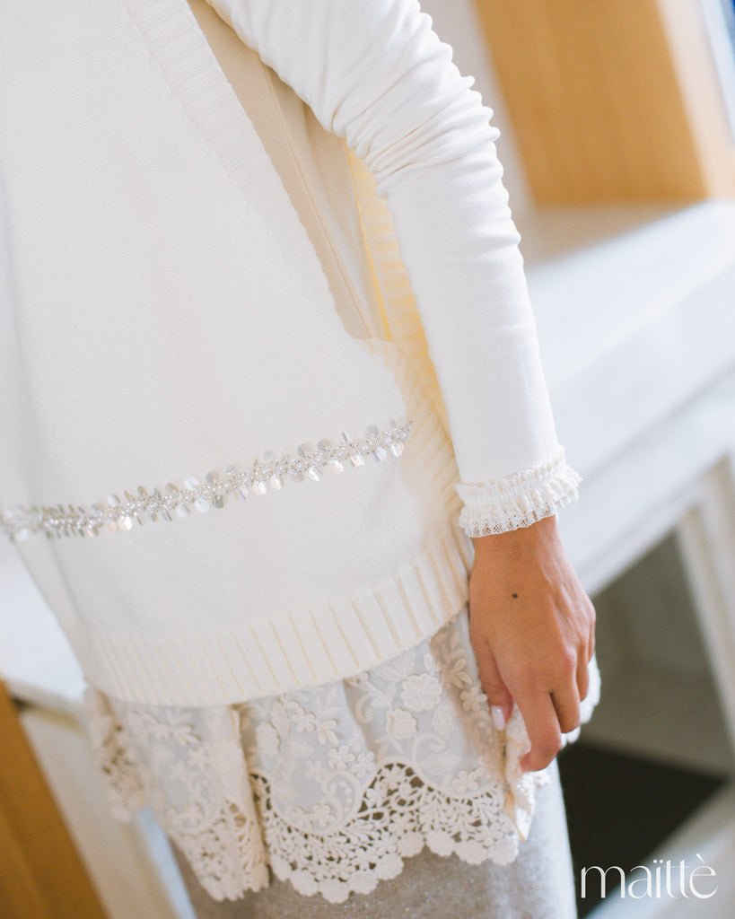 Colete de malha branco com lantejoulas
