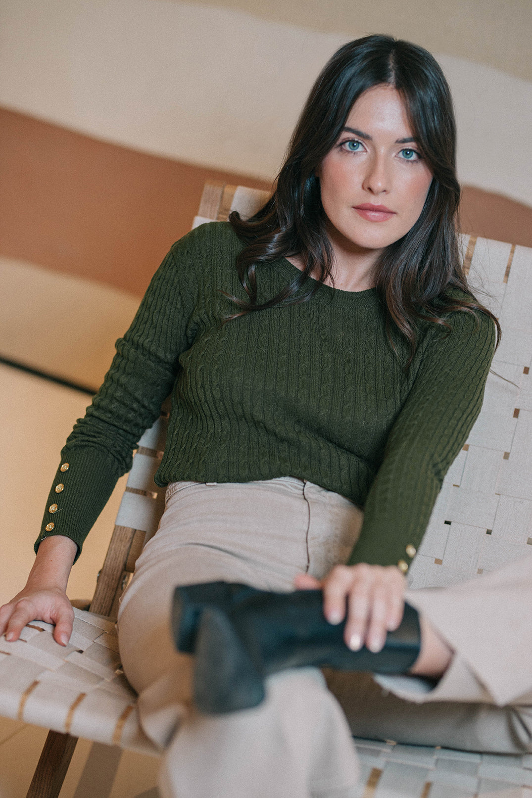 Malha meia estação com textura e decote redondo