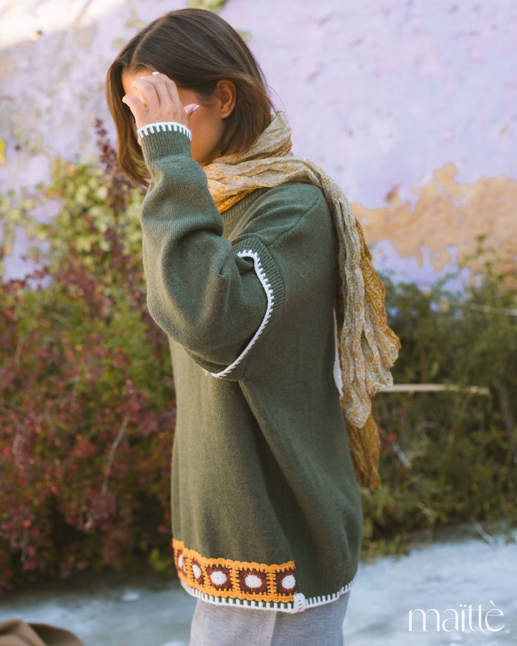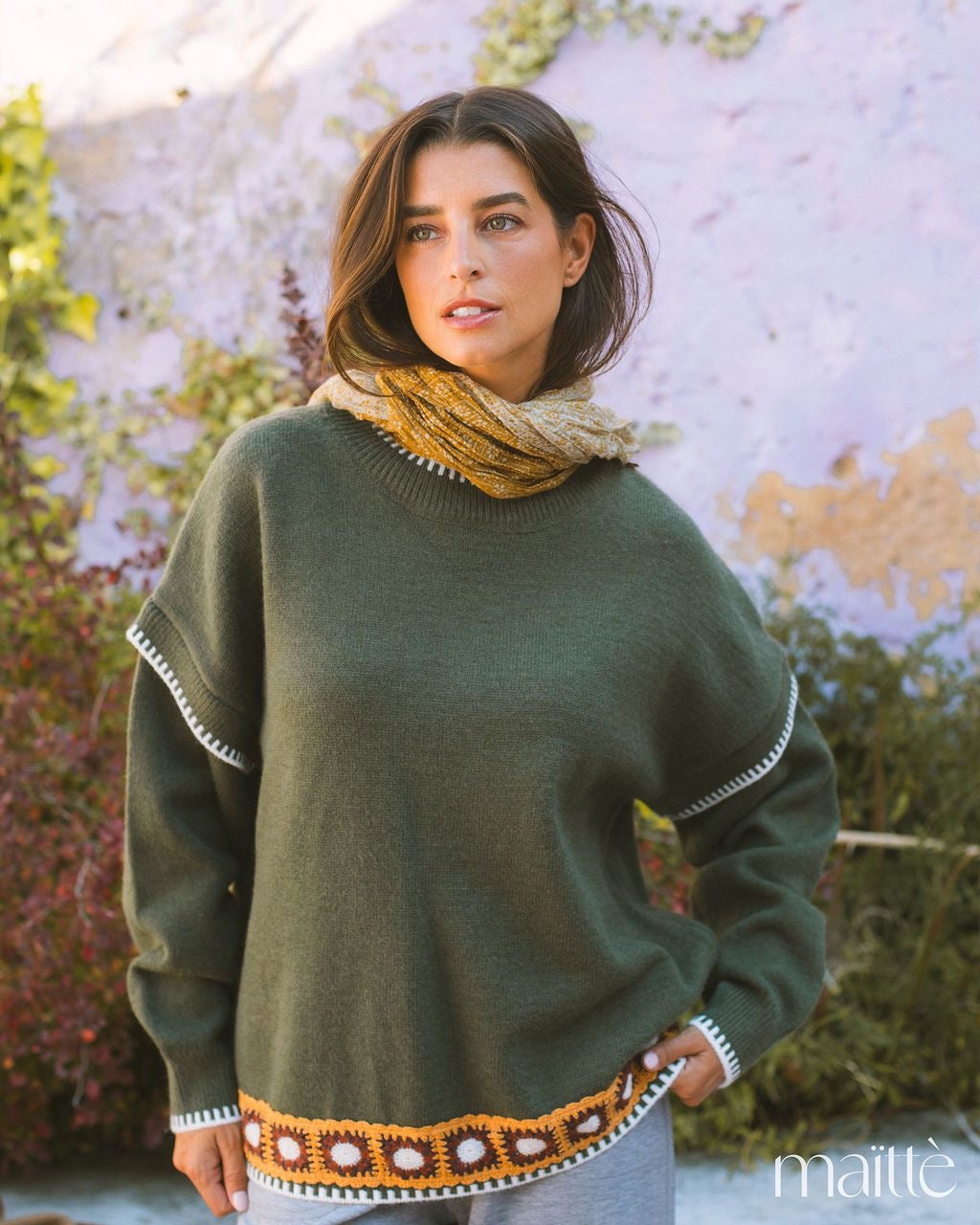Malha verde com bordados