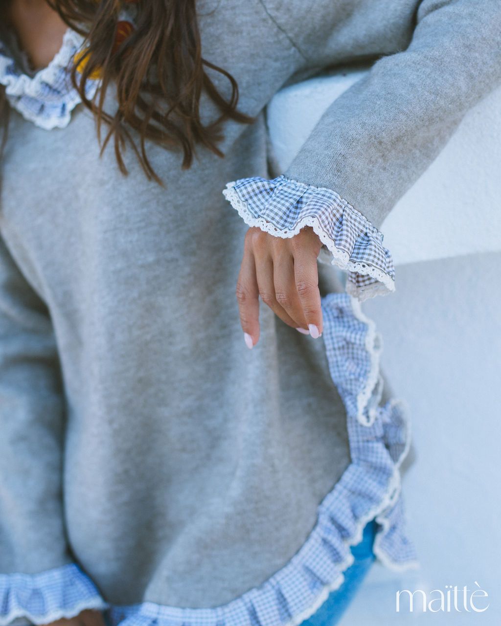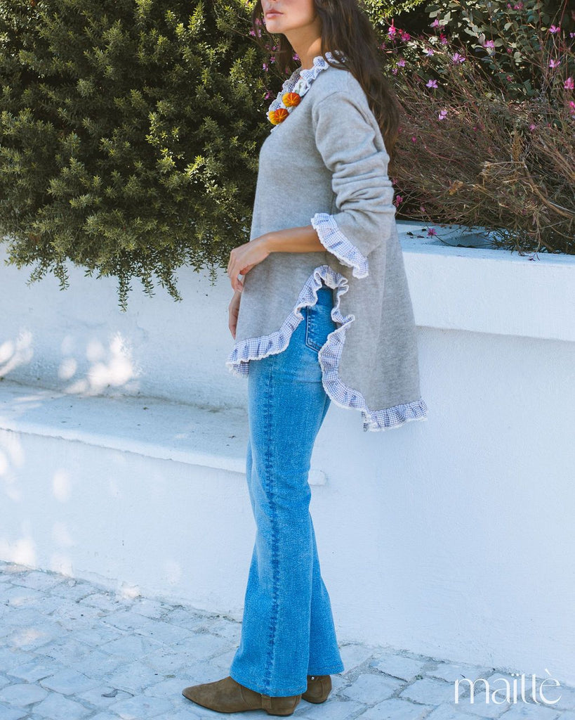Malha beje com folho