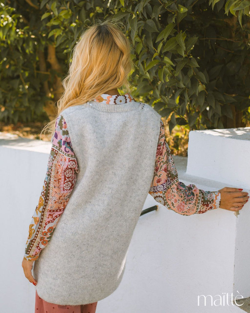 Colete de malha cinza