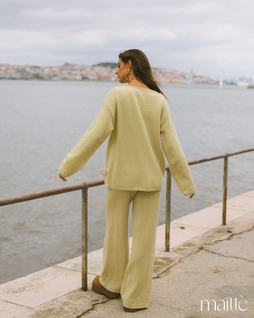 Malha cinza claro com pérolas